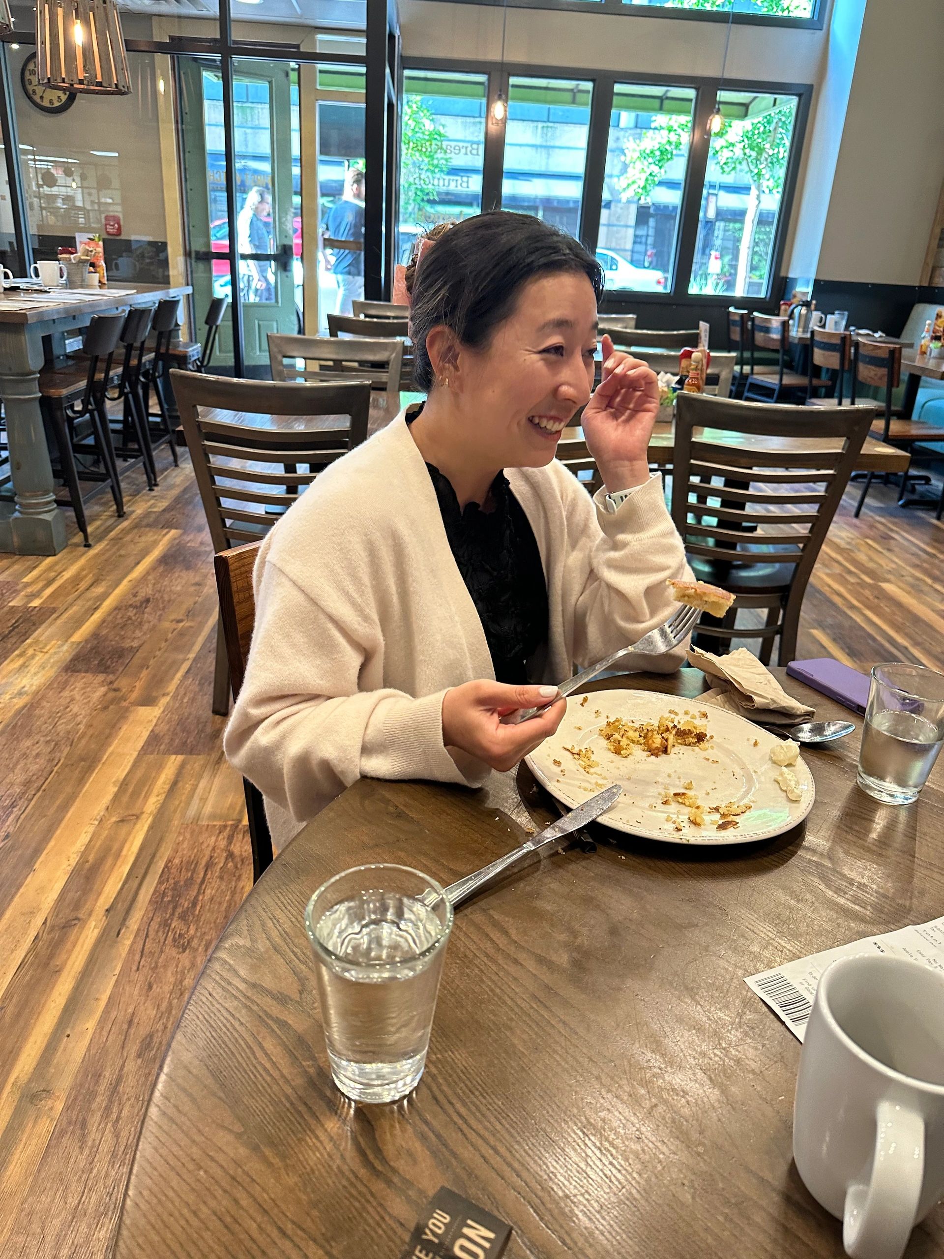 Jessica completing her Pancake Challenge at First Watch on June 11